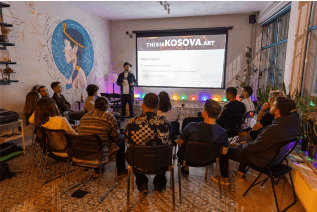 Neben zahlreichen direkten Kontakten und Gesprächen organisierten wir unsere erste Community-Veranstaltung in Pristina, die von den ersten neugierigen Musikerinnen und Musikern besucht wurde. CEO Labhart präsentierte die Plattform, und alle hatten die Möglichkeit, Geschichten, Wünsche und Feedback zu teilen. Ein großer Teil des Feedbacks aus den Gesprächen und der Veranstaltung wurde in die laufende Weiterentwicklung der Plattform eingearbeitet.